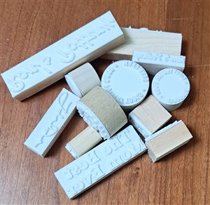and in focus. JPG, EPS, SVG, DWG, TIF, CDR, AI, PDF, PSD, PCX, STL, BMP, PNG, WMF, just to name a few. There is really no need to imbed your image into a Word Doc file, just send me the image file. All stamps are mounted on a wood block. The sizes shown above are the size of the wooden block. I will send you a proof of your stamp for your approval before I print your stamp. If you have an idea that you would like on a stamp and don't see it here just with what you have in mind along with an image and we'll see what we can do. |